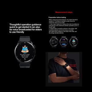 Health features and functions: air pump + air pocket true blood pressure accurate test, ECG, blood glucose, independent accurate blood oxygen, body temperature, lipid, uric acid, respiratory rate, heart rate, sleep, remote relatives and friends care.