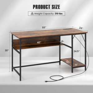 Discover the 55 inches computer desk with charging station-brown – a practical and stylish addition to your space. Designed for everyday use, it combines quality materials with timeless appeal.
