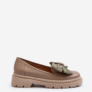 Women’s moccasins crafted from genuine leather. Decorated with a large bow on the front. featuring a flat heel. Rounded nose pads. Soft leather insole will ensure comfort during use. This extremely fashionable cut will perfectly complement many spring stylizations! fabric genuine leather