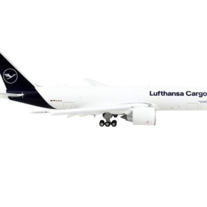 • Brand new 1/400 scale diecast airplane model of Boeing 777F Commercial Aircraft with Flaps Down “Lufthansa Cargo” White with Dark Blue Tail die cast model by GeminiJets.