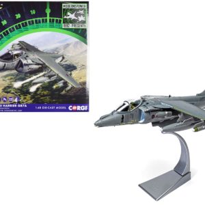• Brand new 1/48 scale diecast model of British Aerospace Harrier GR7A Aircraft “Michelle, RAF No.1 Squadron, Operation Herrick, RAF Kandahar, Afghanistan” (2007) Royal Air Force “The Aviation Archive” Series die cast model by Corgi.