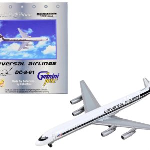 • Brand new 1/400 scale diecast airplane model of Douglas DC-8-61 Commercial Aircraft “Universal Airlines” White with Black Stripes die cast model by GeminiJets.