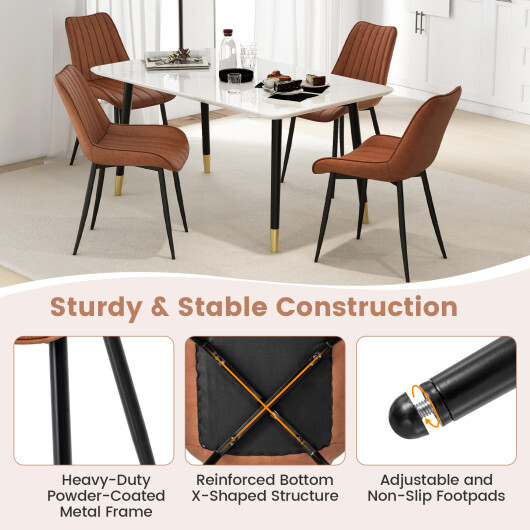 Faux-Leather Fabric Dining Chair Set Of 2 With Metal