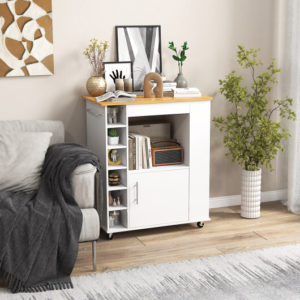 Discover the kitchen cart on wheels with bamboo top and 6-bottle wine – a practical and stylish addition to your space. Designed for everyday use, it combines quality materials with timeless appeal.