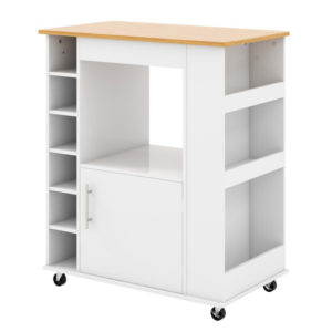 Kitchen Cart On Wheels With Bamboo Top And 6-Bottle Wine