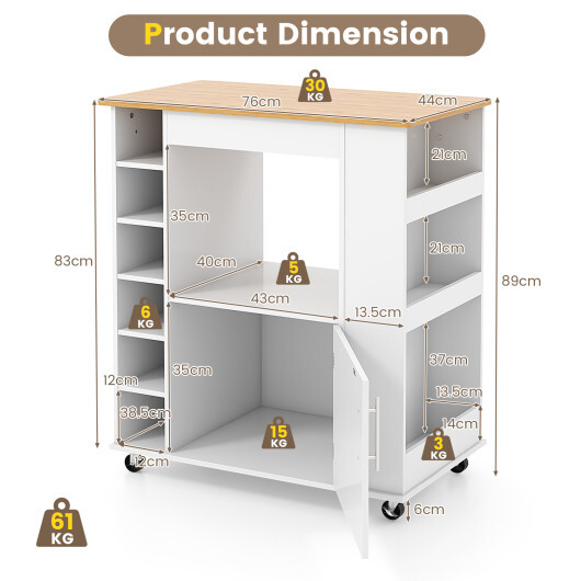 Kitchen Cart On Wheels With Bamboo Top And 6-Bottle Wine