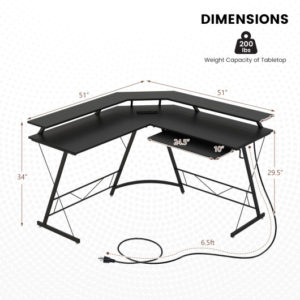 Discover the l-shaped computer desk with power outlet and monitor – a practical and stylish addition to your space. Designed for everyday use, it combines quality materials with timeless appeal.
