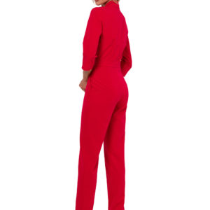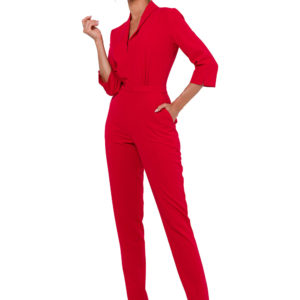 Jumpsuit with 3/4 sleeves and a lined collar, fastened with a covered zipper. Local creases on the waist line, narrow legs with stitching through the middle. Designed and sewn in Poland.