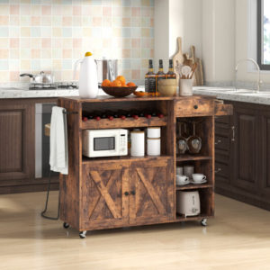 Discover the rolling kitchen island cart with drop leaf and wine – a practical and stylish addition to your space. Designed for everyday use, it combines quality materials with timeless appeal.