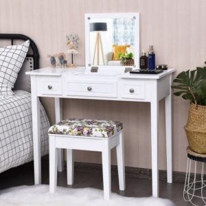 Vanity Dressing Table Set With Flip Top Mirror And 3 Drawers