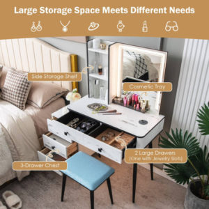 Discover the vanity makeup table set with lighted mirror-brown – a practical and stylish addition to your space. Designed for everyday use, it combines quality materials with timeless appeal.